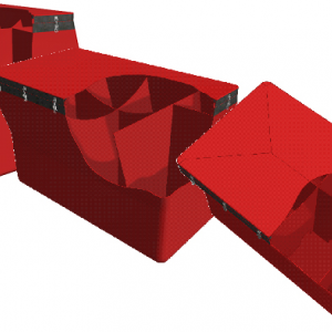 Základný technický návrh vychádzal z požiadavky zabezpečiť prepravu zhruba 2 000 litrov vody, s možnosťou prepravy základnej výbavy, potrebnej na hasenie. Pre zvýšenie užitočnej nosnosti sa počítalo s odľahčenou konštrukciou nádrže z kompozitných materiálov (sklolaminát). Z tohto dôvodu nádrž nepresahuje hmotnosť 130 kg. Pre bezpečnosť prepravy a zabránenie vertikálneho a horizontálneho presunu vody v nádrži počas prepravy sa uvažovalo o konštrukcii vnútorných vlnolamov (Obr. 2). Vlnolamy sú súčasťou konštrukcie nádrže, čím za zvýšila aj jej celková pevnosť. K zjednodušeniu údržby sa pristúpilo ku konštrukcii s odnímateľným vekom.