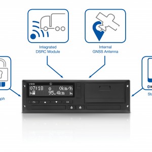 DSRC modul je určený pre kontrolné orgány na vzdialenú kontrolu 19 parametrov v digitálnom tachografe aj za jazdy vozidla.