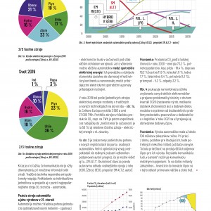V roku 2019 bol podiel jednotlivých zdrojov elektrickej energie rozdielny v tradičných a nových technológiách na jej výrobu – obr. 1A, b. Celkovo Európa vyrobila 3 993 a svet 27 005 TWh. Portfólio zdrojov z hľadiska produkcie CO2 napr. na TWh je potom započítané cez nabíjačky do „znečistenia“ (v súčasnosti je to 50 %) aj relatívne čistého zdroja – elektrickej energie z el. zásuvky.