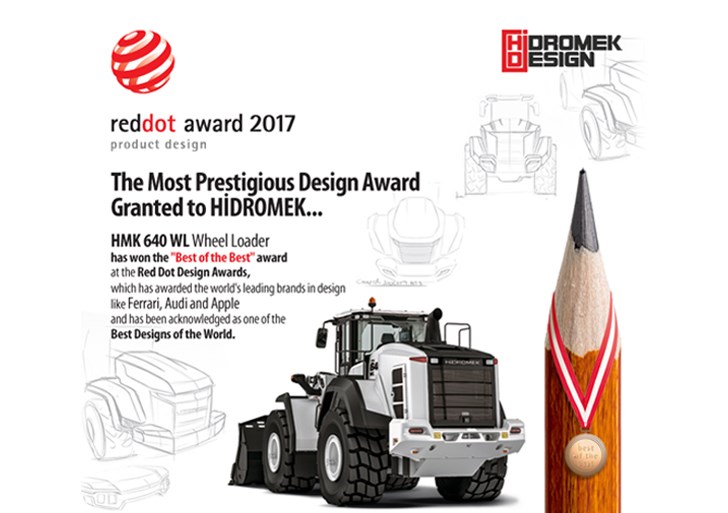 Spoločnosť HİDROMEK získala dve ocenenia Red Dot Awards 2017 v rôznych kategóriách. Zatiaľ čo grejder HMK 600 MG získal ocenenie Red Dot Winner, kolesový nakladač HMK 640 WL získal ocenenie Best of the Best. Red Dot Design Awards, ktoré udelili popredným svetovým značkám ako Ferrari, Audi a Apple, je ocenenie za jeden z najlepších dizajnov sveta. V roku 2017 získalo iba 7 výrobkov týchto značiek ocenenie Najlepšie z najlepších v automobilovej kategórii. Získaním tejto ceny sa HİDROMEK stala jednou z najuznávanejších dizajnérskych značiek na svete.