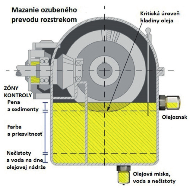 Po každej kontrole, ak boli zistené určité nedostatky, tribotechnik môže navrhnúť opatrenia na okamžité odstránenie zistených tribotechnických problémov. Na obrázku č. 1 je uvedený ozubený prevod (mazanie rozstrekom oleja) a možnosti kontroly (zóny kontroly) stavu prevodového mazacieho oleja pomocou odmernej tyčky, olejoznaku a tiež kontroly usadenín, nečistôt, vody (olejová miska) na dne olejovej nádrže. Z pohľadu bežnej, rutinnej kontroly môžeme uviesť niektoré činnosti, postupy, ktoré nám dajú informácie o stave maziva. Ide o tieto výsledky z kontroly: